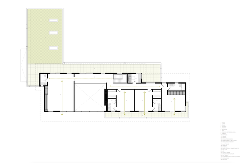 Programs are positioned according to specific levels of required light and sound control. Within a flexible plan, ‘dark programs’ (exam rooms, secured file storage, breakout rooms, etc.) are centralized while ‘light programs’ are given access to the exterior. Nodes and carve-outs through the core define shortcuts and maximize circulation efficiency.